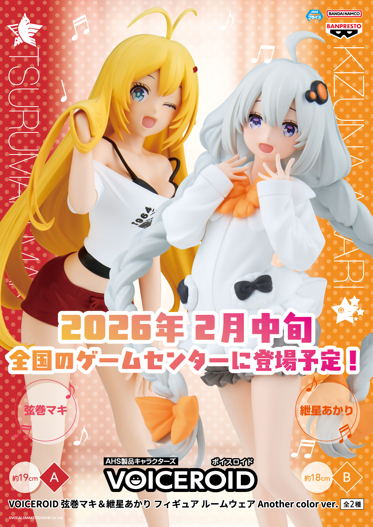 「VOICEROID 弦巻マキ&紲星あかり フィギュア ルームウェア Another color ver.」は来年2月中旬リリース予定です。