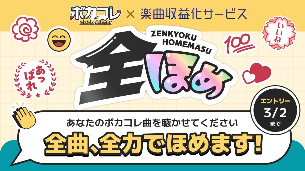 - 【ボカコレ2026冬 × 楽曲収益化サービス】ボカロメーカーや公式があなたの楽曲を選出&担当者がコメント!「NRC賞」と「全ほめ」を開催!(2月19日(木)~3月2日(月) 開催)|ニコニコインフォ