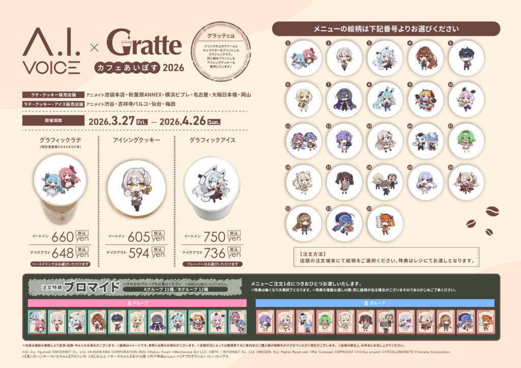| トピックス | 音声合成ソフトは株式会社エーアイ - A.I.VOICE×Gratte カフェあいぼす2026 | Gratte | 株式会社アニメイト