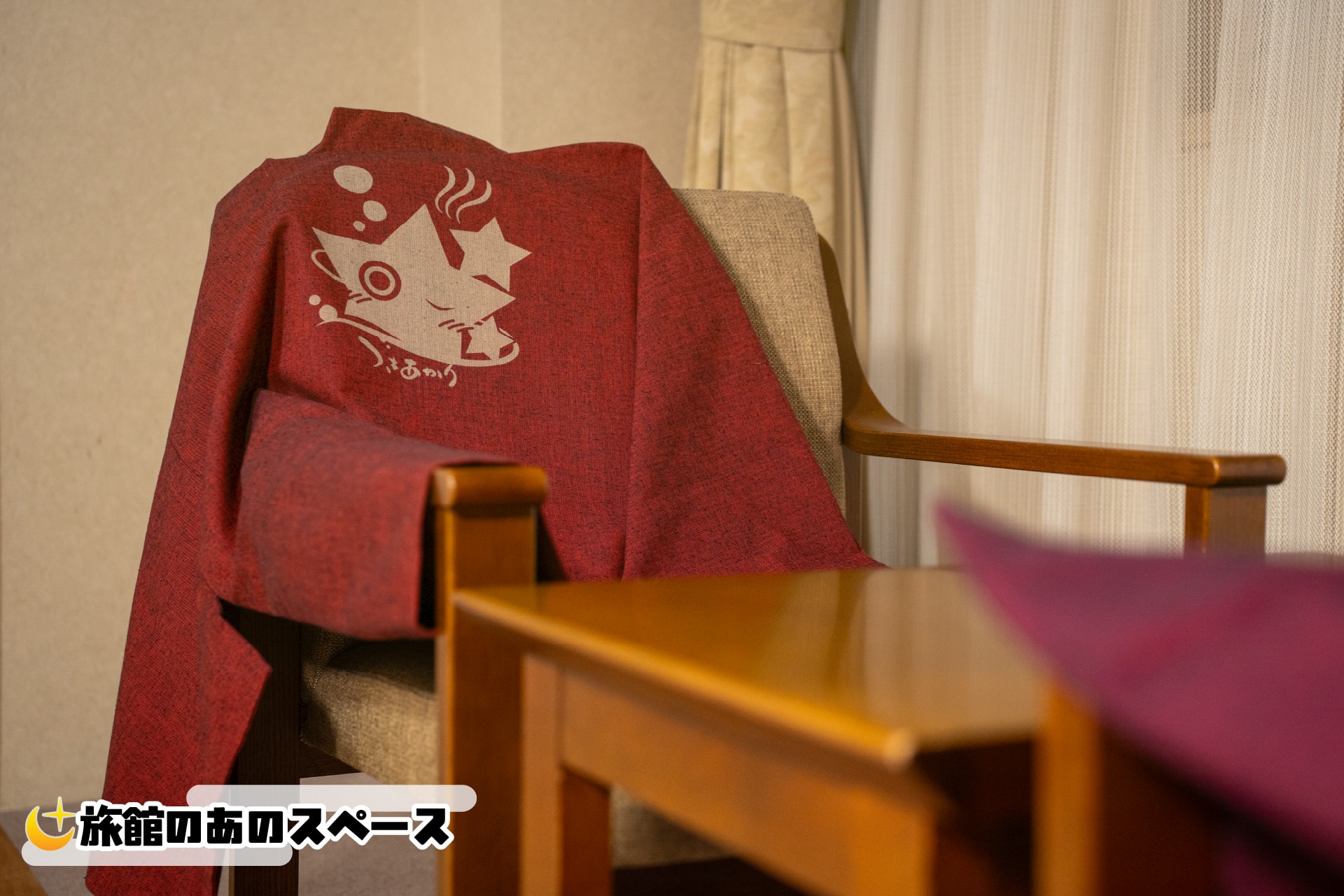 裏面には「湯処つきあかり」のロゴ。これも、知らない人からしたらキャラクターグッズには全く見えないアイテムとなっております。どこかの旅館からパクってきた感が出てしまいますが、宿泊記念ノベルティですと言い張りましょう。