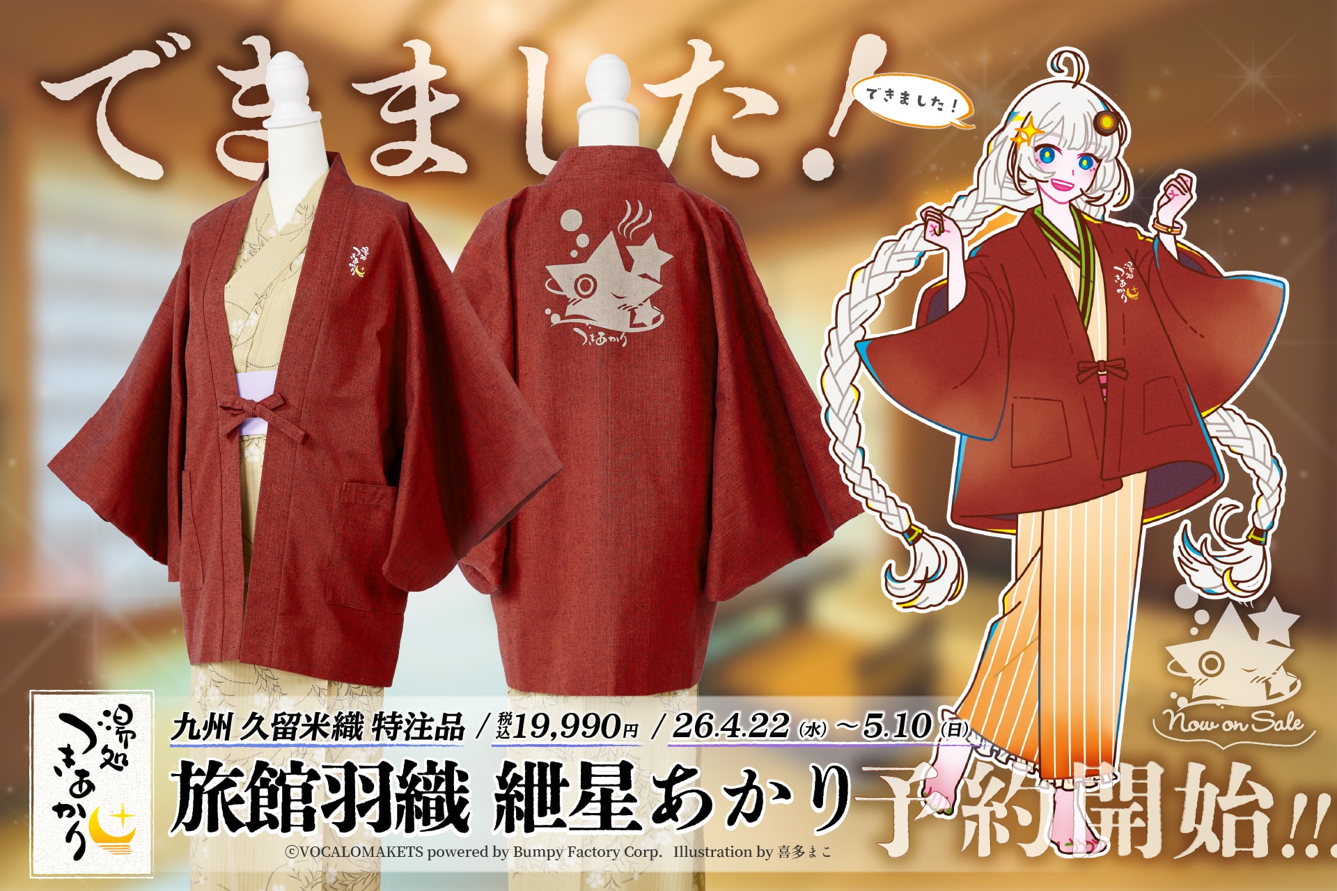 ▶【湯処つきあかり】紲星あかりデザインの温泉旅館羽織の予約販売を開始しました(26/04/22) – 鵠屋≡